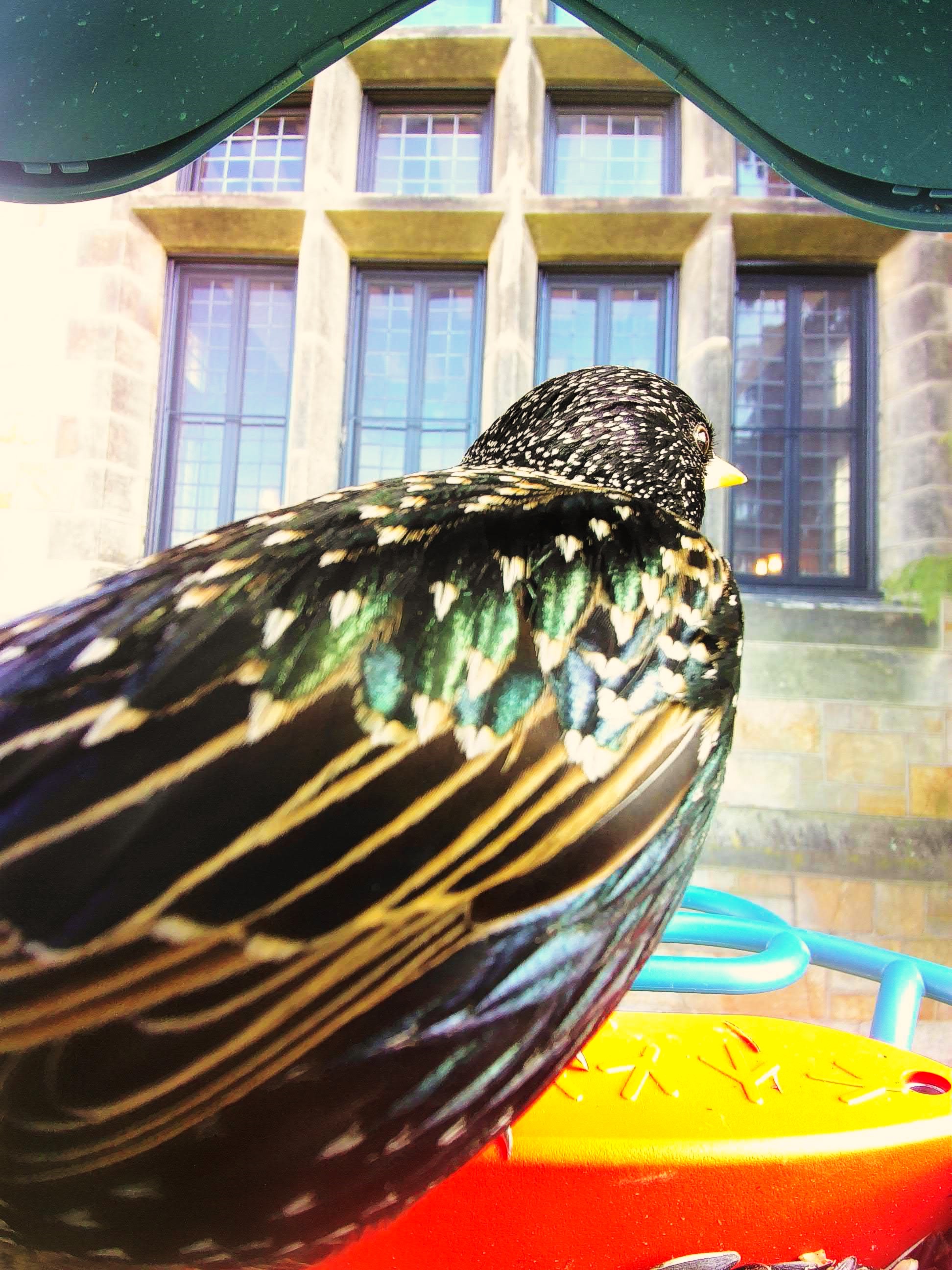 Common Starling. From the Birdbuddy app: Chances are you’ve seen big, spectacular moving clouds of birds flying in breath-taking formations. They were probably starlings and that maneuver is called a murmuration. They perform them before roosting. These European birds were brought to New York in the 1890’s by Eugene Shieffelin and his friends, who released hundreds of birds in an attempt to introduce all the species mentioned in Shakespeare’s works.