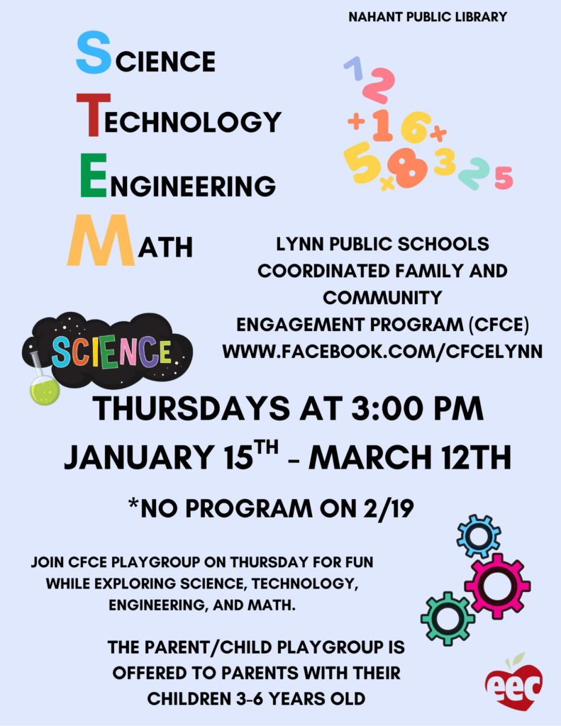 Join CFCE playgroup on Thursdays for fun while exploring science, technology, engineering, and math.